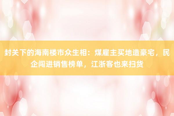 封关下的海南楼市众生相:煤雇主买地造豪宅,民企闯进销售榜单,